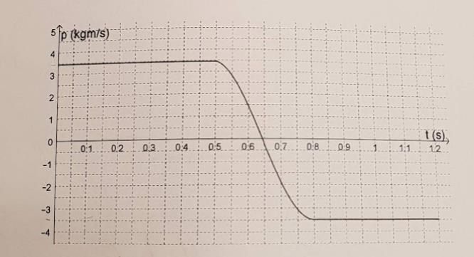 Det här är något nytt då jag oftast har stött på en kraft och tid diagram där man har kunnat beräkna impulsen genom att beräkna arean under grafen. Men visst är det så att om har en p-t -graf så är derivatan av denna graf en kraft och tid diagram då I= Δp och I=F*Δt vilket ger att F=Δp/Δt. Nedan följer grafen som uppgiften bygger på: