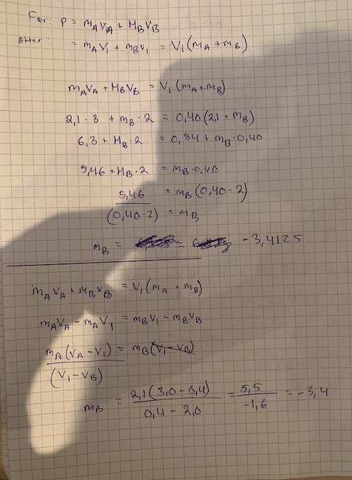 Jag har prövat att lösa den her, men får inte samma svar som facit. Jag forstår inte hur facit får 4,5kg. Jag räknar ut med samma metod, men får -3,4 kg... provat att lösa den 2 gånger. Någon som ser varför? tack