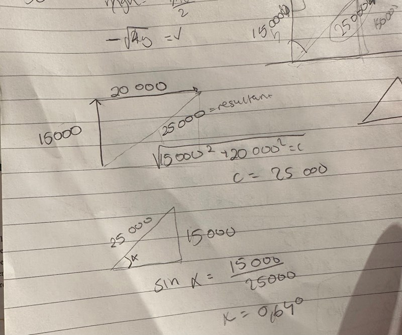 Svaret ska vara 25000 med riktning 37 grader