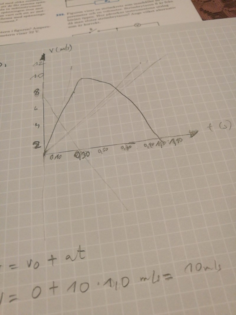 Yngve skrev:Du vet accelerationen. Den är konstant och hänger ihop med v/t-grafens lutning.