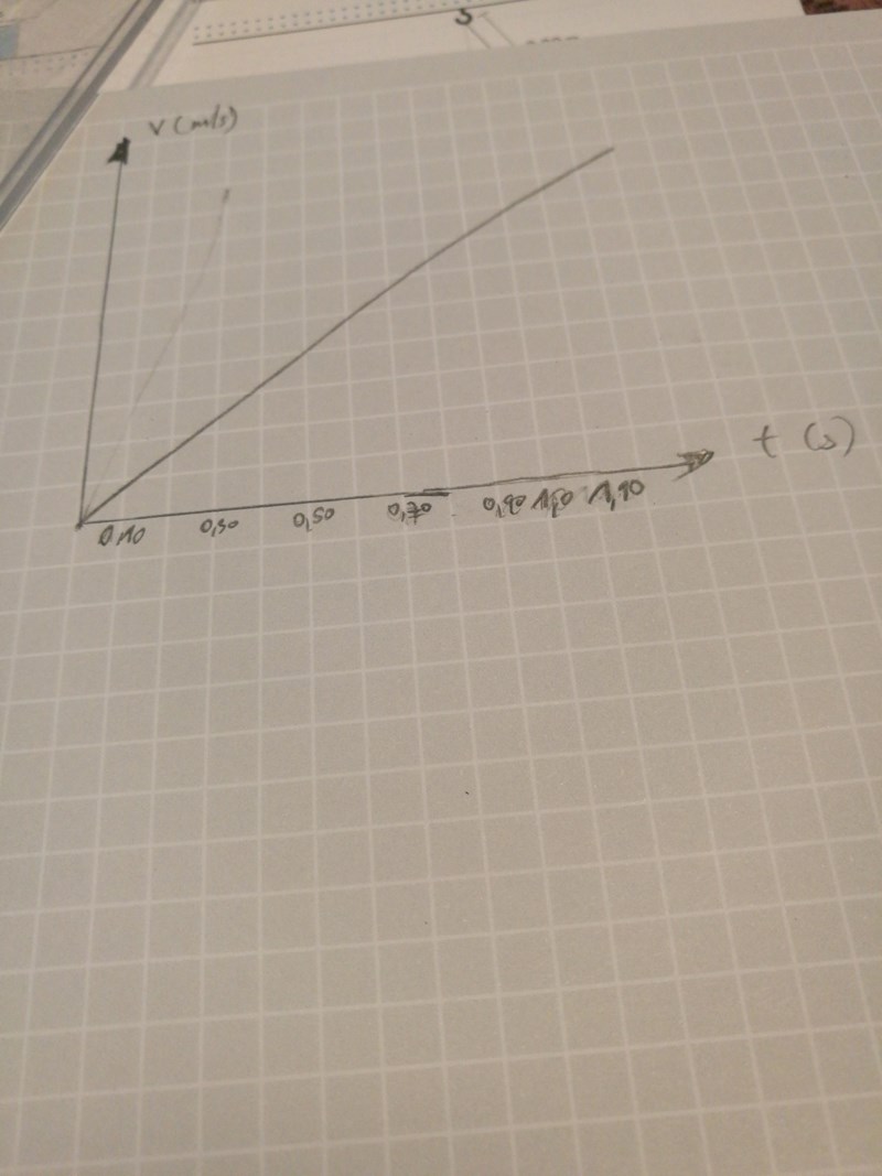 Bra att du har ritat en rät linje, för det är nämligen så v/t-grafen ser ut.