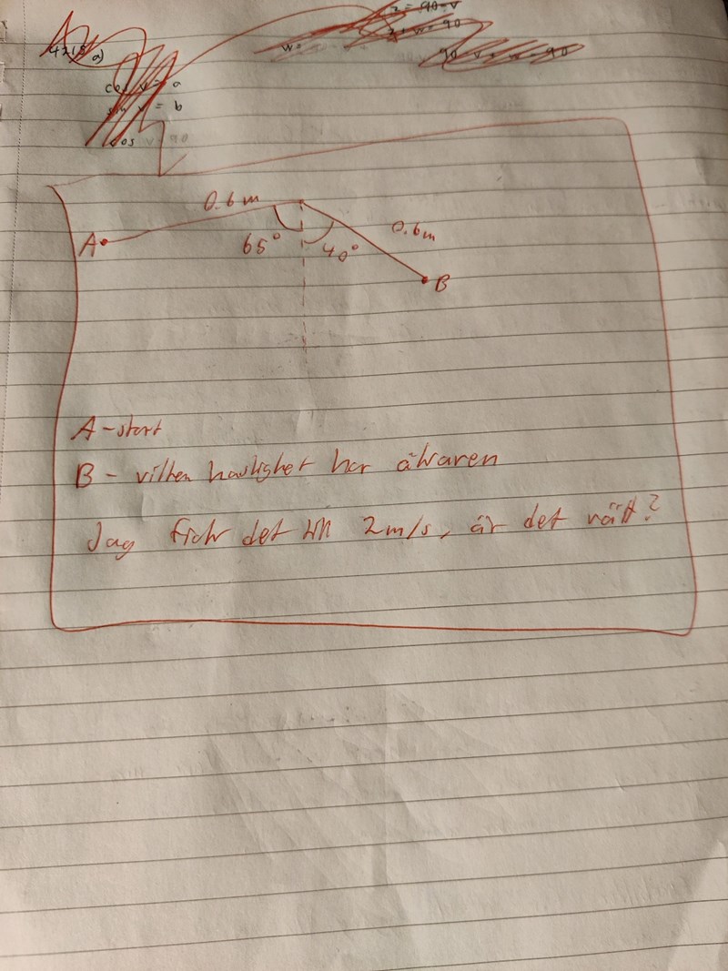 Detta är uppgiften, och jag fick svaret till 2m/s. Är det rätt?