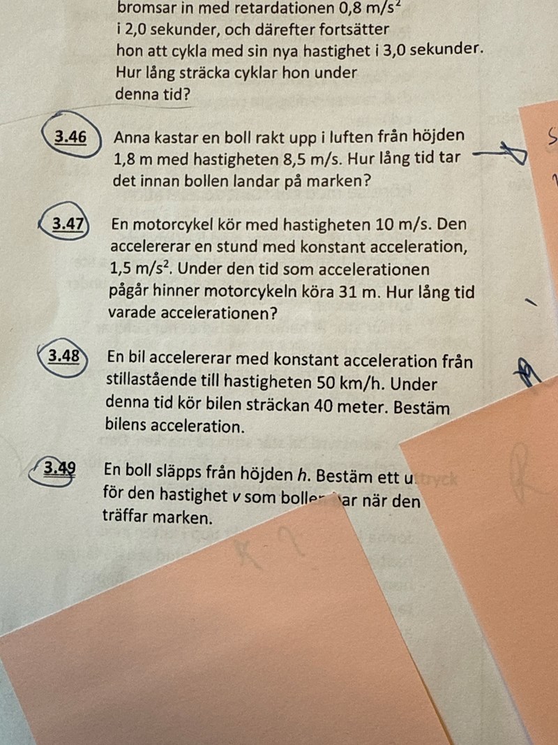 Undrar över alla fyra men 3,46 löste jag med pq vilket det går men helst skall det lösas genom rörelse formler