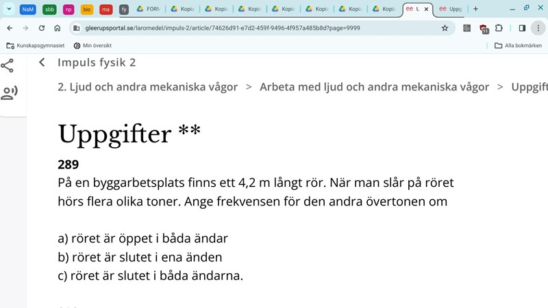 Uppgiften är dålig. Om man hör någon luftresonans när man slår på röret, är det grundtonen. Den kan innehålla övertoner, men det är inte så att det "hörs flera olika toner".