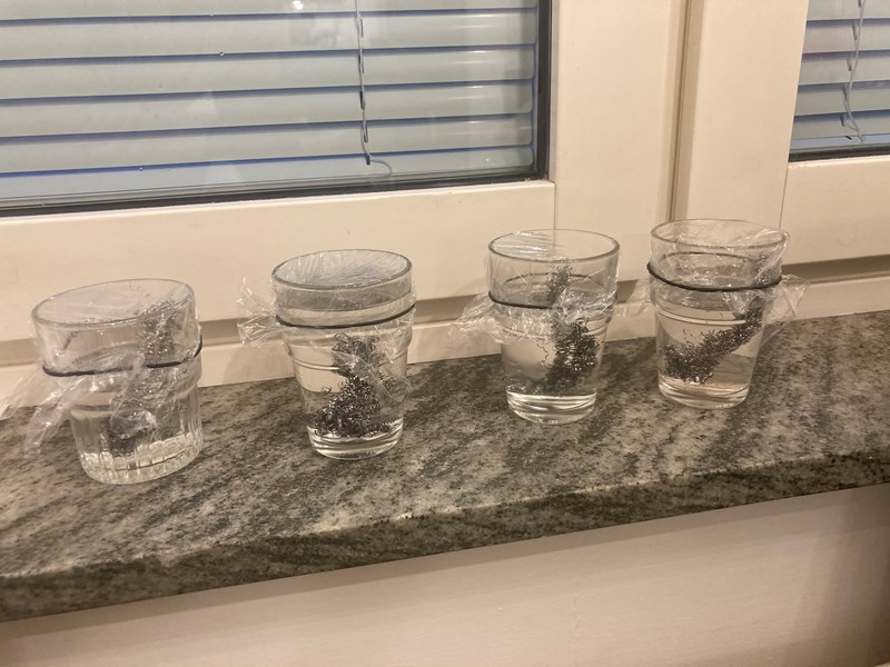 Jag lät glasen stå på fönsterbrädan i 3 dagar, men ingenting hände med stålullen (använde svinto.) Kan det vara därför det inte rostade i något av glasen?