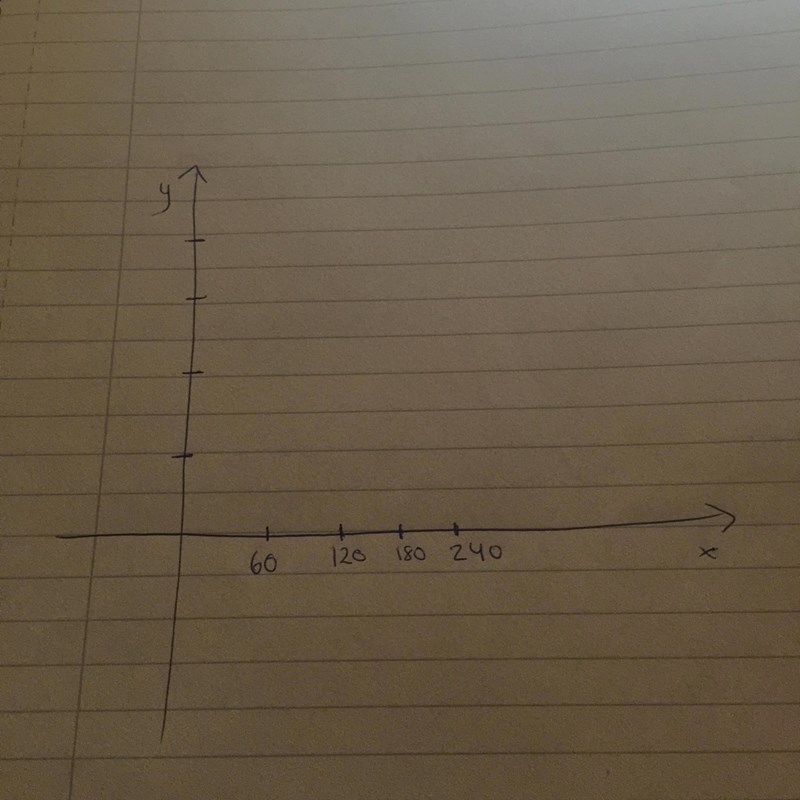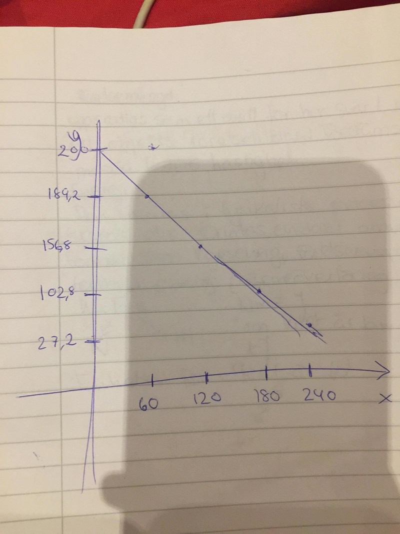 Det är meningen att du skall använda dig av funktionen . Funktionen räknar per sekund, så det är bättre att stoppa in x = 0, 60, 120, 180 och 240. Vilka värden på r får du?