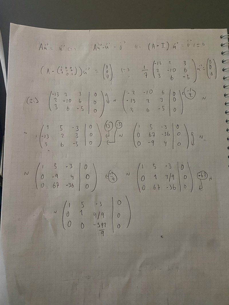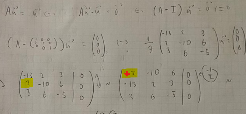 så menar man den axeln allting snurrar runt? i R^2 en punkt, i R^3 en linje... lol borde fattat tack! men då håller jag med om att Au = u oavsett rotationen (för man skulle kunna tänka sig att vektorerna roterar 360 grader men det vi vet med 100% säkerhet är: trotts rotationen dvs trotts hur många grader vektorerna snurrar kring rotationsaxeln så gäller det att om vektorerna ligger i rotaationsaxeln så kommer de vektorerna vara i exakt samma position efter rotationen dvs. Au = u...