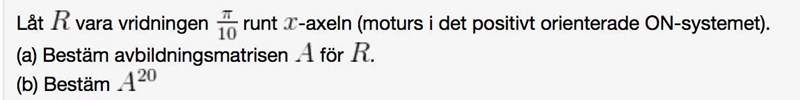 Nu har jag testat att gissa en formel igenom att multiplicera matrisen med sig själv några gånger, för jag är helt säker att vi har inte gått igenom eigen(?) vektorer i klassen. Alltså det här: