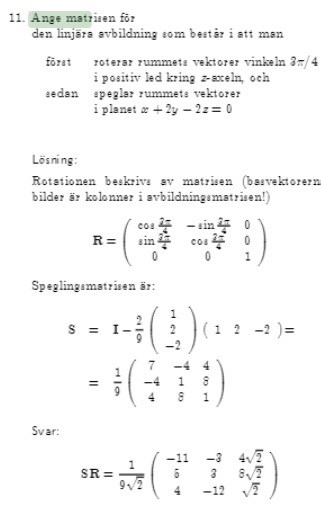 I lösningen så skriver de att rotationen sker först, följt av speglingen. Hur kommer det då sig att de i slutet av lösningen då multiplicerar speglingen, följt av rotationen? Jag förstår mig inte på detta.