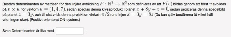 Hej, jag håller på med följande uppgift inom linjär algebra