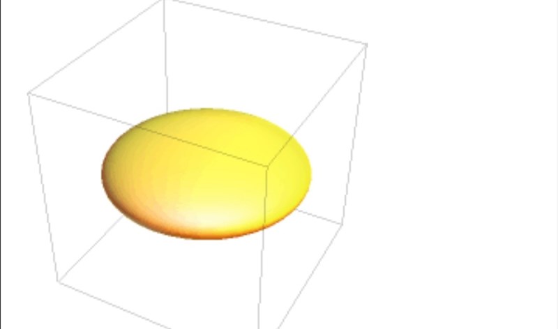 Du får två olika ellipsoider beroende på vilken axel du roterar kring. Gör som jag tipsade och ta något mer avlångt, t.ex. . Tänk dig att du först roterar kring y-axeln. Då får du en halv tunn skiva. Lägger du till en till sådan bit undertill har du ett slags tefat.