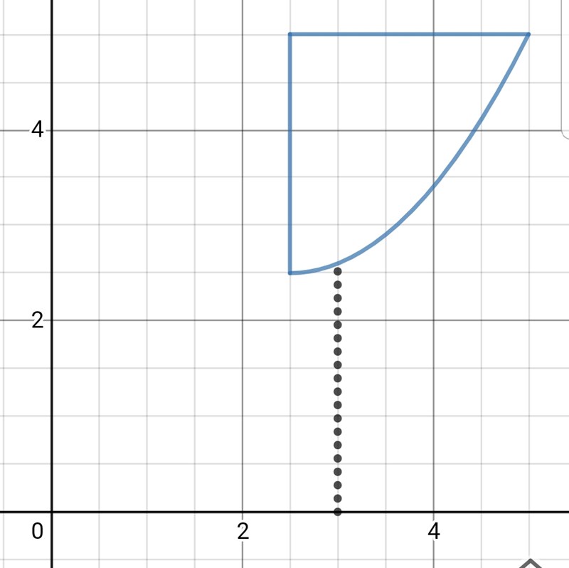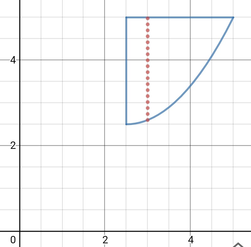kurvsegmentet startar vid y=2,5 och slutar vid y=5