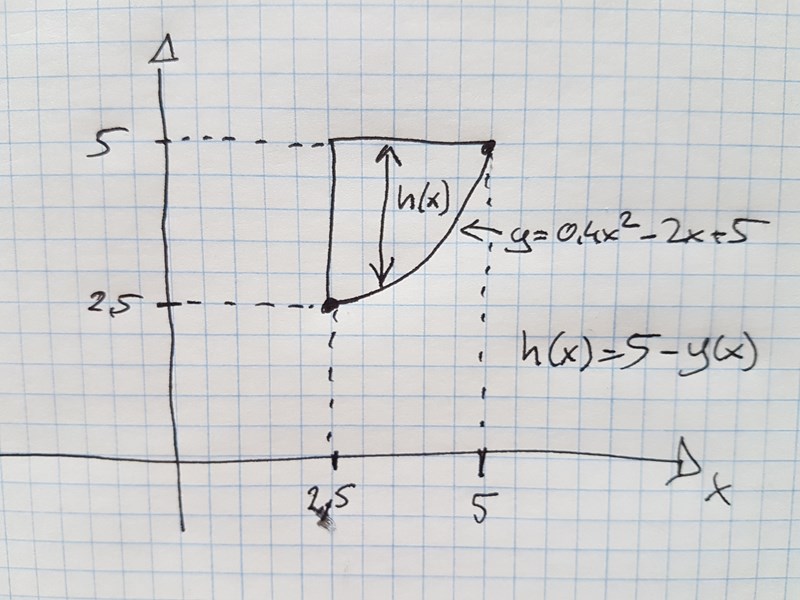 så man ska integrera funktionen y(x) = -5 + 0.4x2 + 2x - 5 + 5?