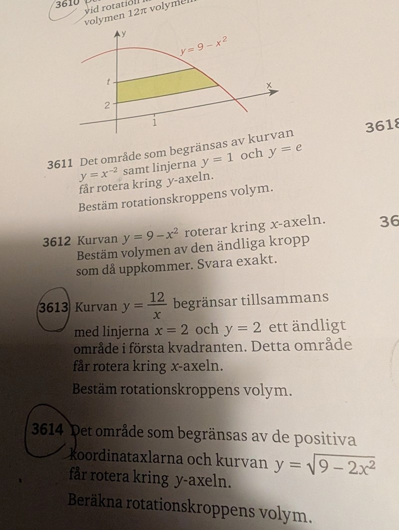 Det är ofta bra att utnyttja symmetrier för att få enklare beräkningar. I det här fallet ger en integrering från x = 0 till x = 3 exakt halva den efterfrågade volymen.