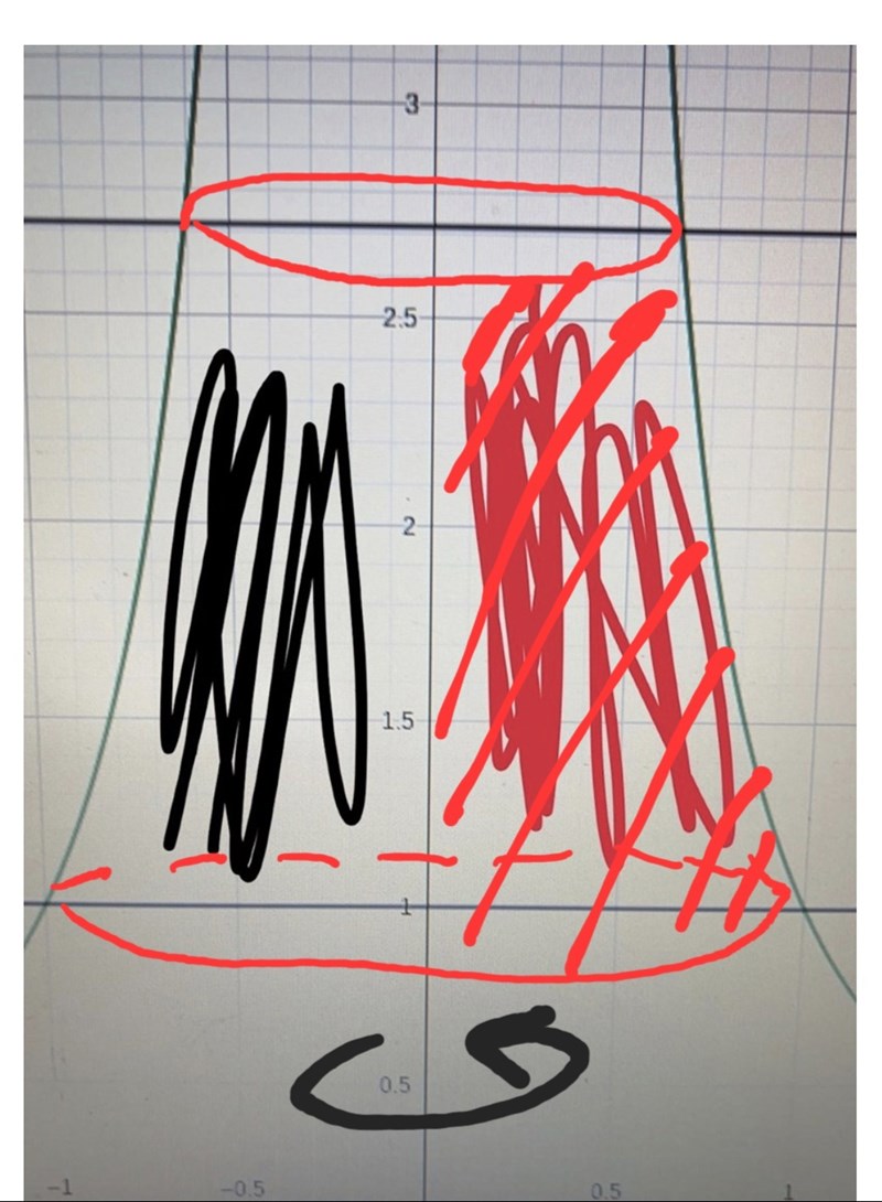 Men hur ska jag kunna veta ifall rotationsvolymen av det röda området täcker det svarta området också? Jag förstår inte själva tankesättet