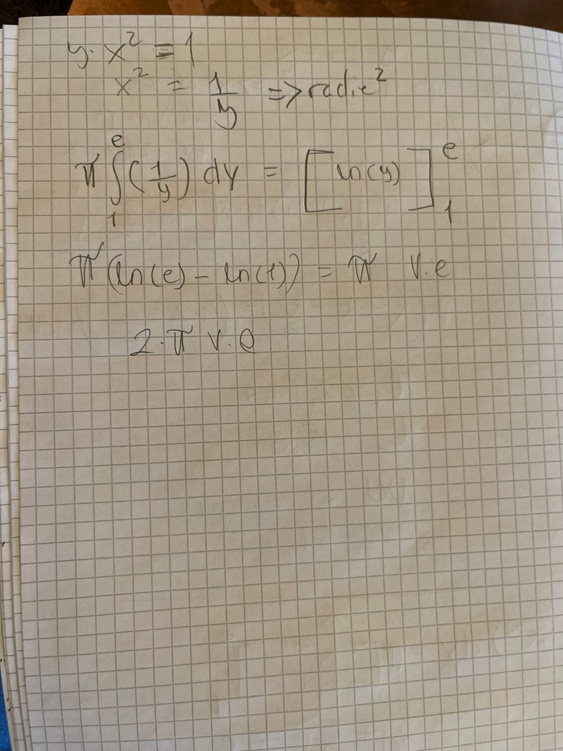 Integralens värde ger alltså hela rotationskroppens volym och därför behöver du inte multiplicera detta värde med 2.