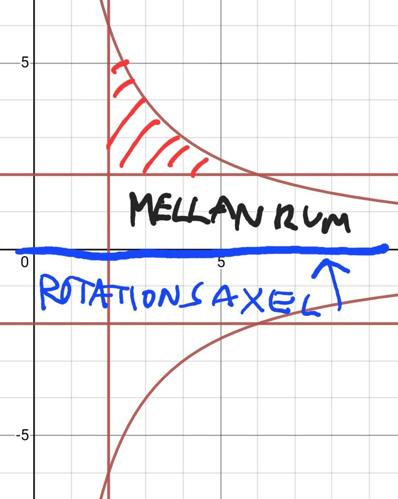 Katarina149 skrev:Aha så alltid om det är ett mellanrum mellan området som roterar och rotationsaxeln då kmr det bildas ett hål oavsett om området ska roteras kring x axeln eller y