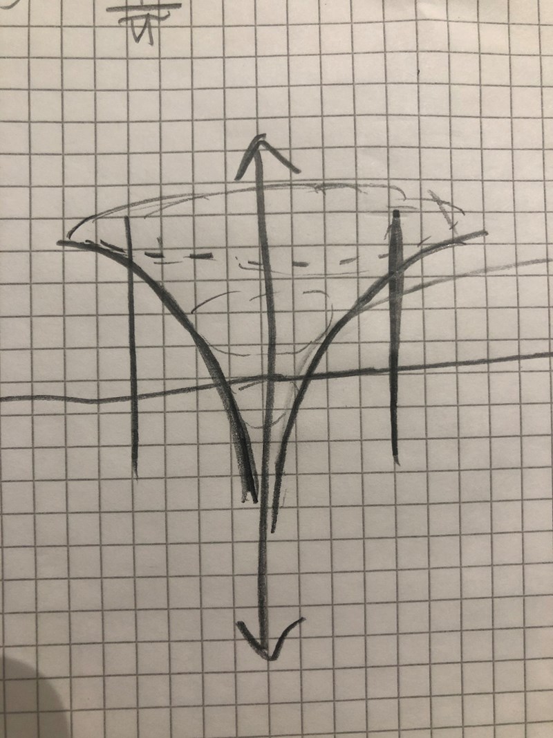 Jag har skissat en bild. Men hur ska jag tänka sen? Vart finns hålet? Hur visste du att det finns ett hål? Jag hänger inte med på ditt tankesätt.