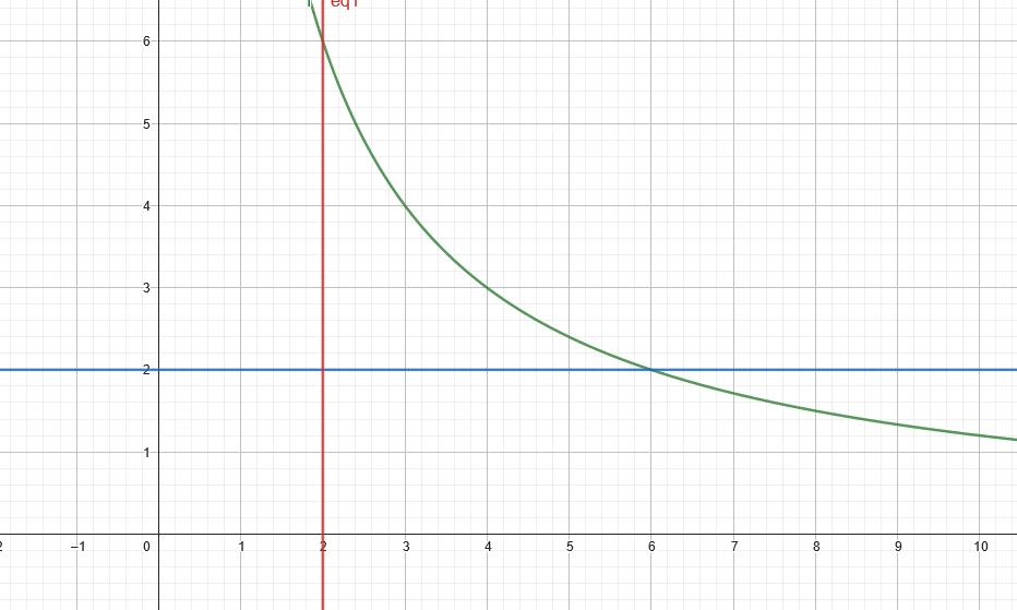 Anledningen till varför jag tror den finns där är eftersom frågan påpekar att kurvan tillsammans med linjerna x och y begränsar ett område. Detta kan enklare förklaras om du skriver in kurvan och linjerna i en grafritarem, ungefär på detta sätt: