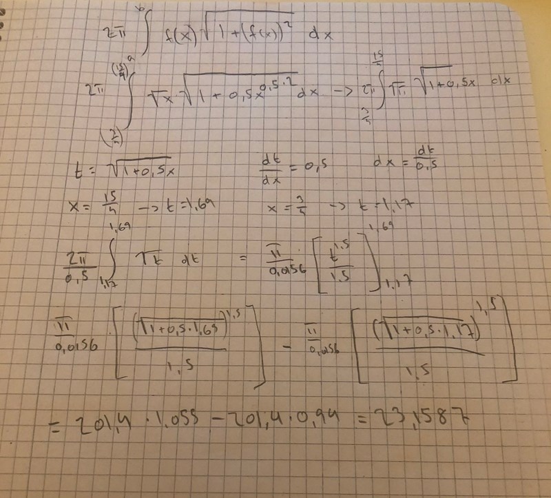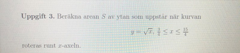 Har för första gången löst en uppgift om rotationsarea vet dock inte om min lösning stämmer. Jag infogar min lösning i kommentarsfältet, här är frågan: