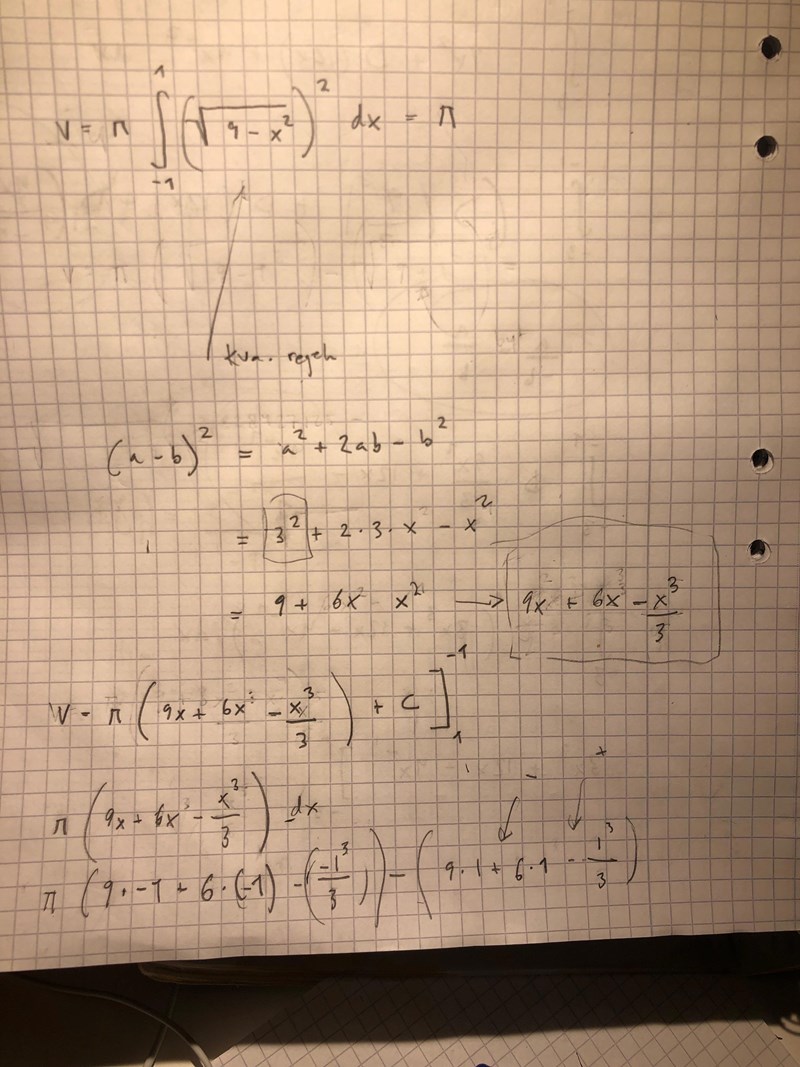Det blir π(9-1/3-(-9-(-1/3)))=π(18-2/3)=52π/3.