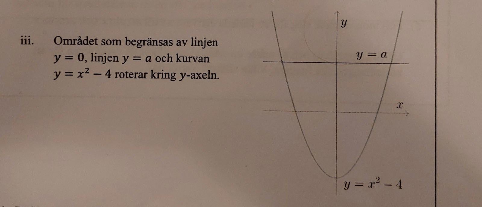 Jag är osäker på vad min höjd kommer motsvaras av. Höjden av cylindern under x-axeln kommer väl att vara f(x) där x är radien är cylindern? Är höjden av cylindern ovanför x-axeln isåfall a, det vill säga höjden jag ska sätta in i formeln är a?