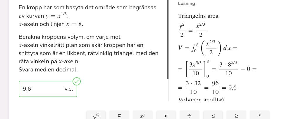 Volymberäkn8ng med hjälp av integraler innebär inte automatiskt att det är fråga om en rotationskropp.