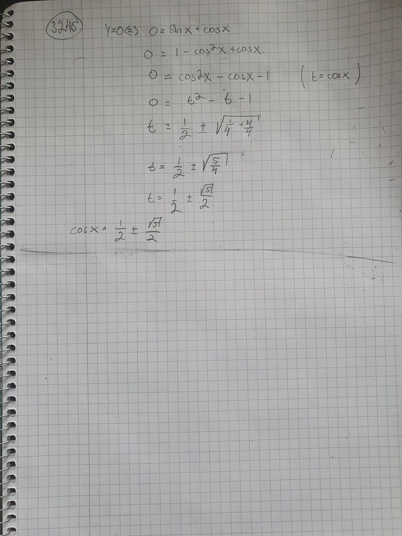Men använd additionsformeln, eller skriv om ekvationen som -sinx = cosx, vilket ger -tanx = 1.