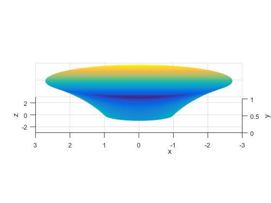 Så här kommer figuren att se ut som man får om man roterar det där området runt y axeln.