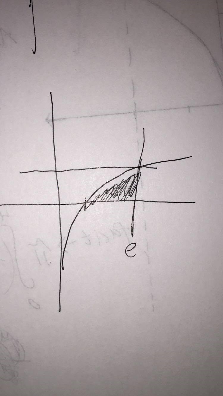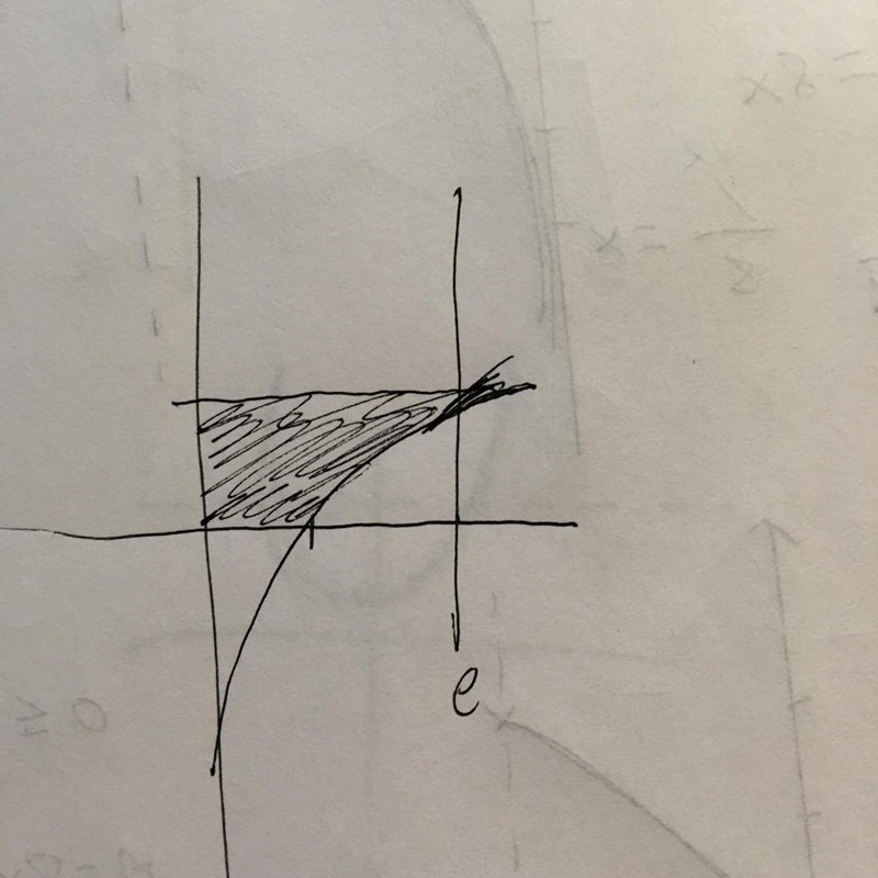 bild1: om figuren mellan grafen, x=e och x axeln får rotera runt y axeln så ser figuren ut så? Ja.