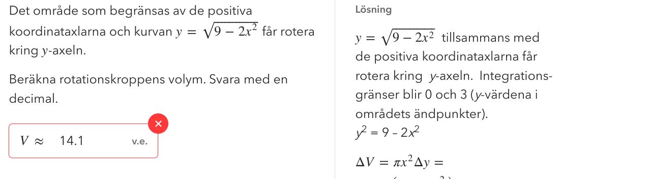 Du ser då att det blir en halv ellips med maxpunkt vid (0, 3) och nollställen vid .