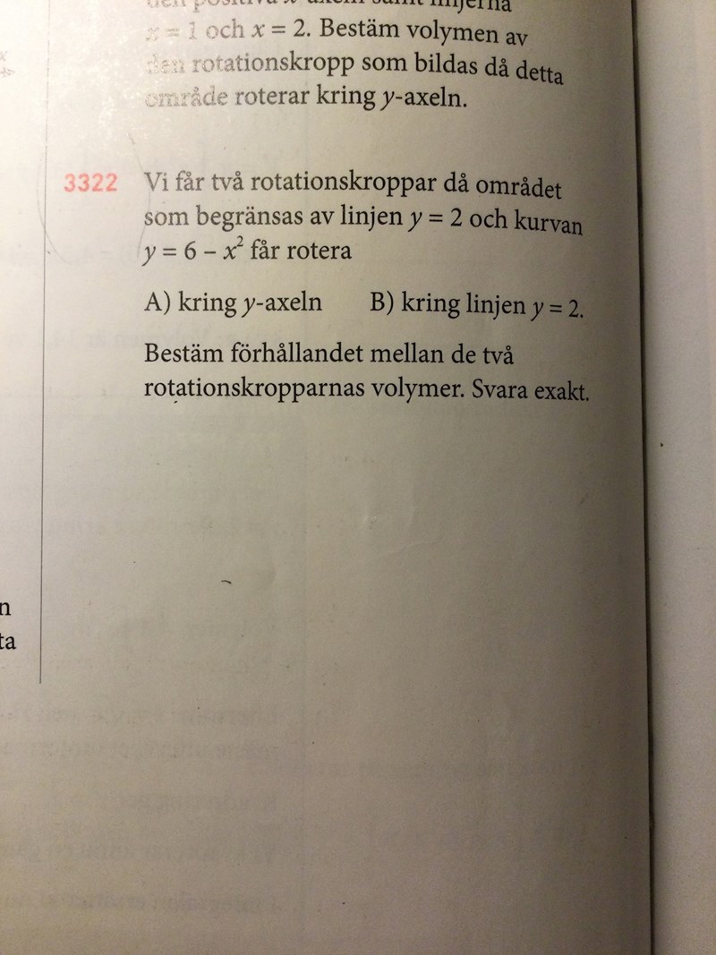 naturarecheck skrev:Juste den första integralens gränser ska vara två till sex, eftersom det är rotation kring y axeln.