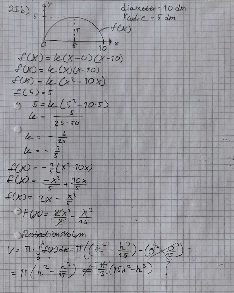 Sen, en annan sak: kolla i matteboken efter rotationsvolymer (https://www.matteboken.se/lektioner/matte-4/integraler-och-tillampningar/rotationsvolymer#!/) - om man roterar som du gjort, runt x-axeln, du ska använda (dvs )