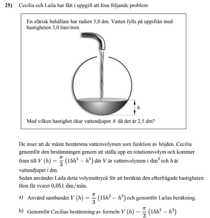 Jag förstår inte riktigt vad A är och varför den är = 5 - h. Kan du förklara det för mig?