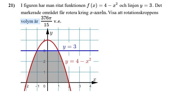 Det är jag med på. Blir cylindern π ∫ 4-x^2 med gränserna -1 till 1?