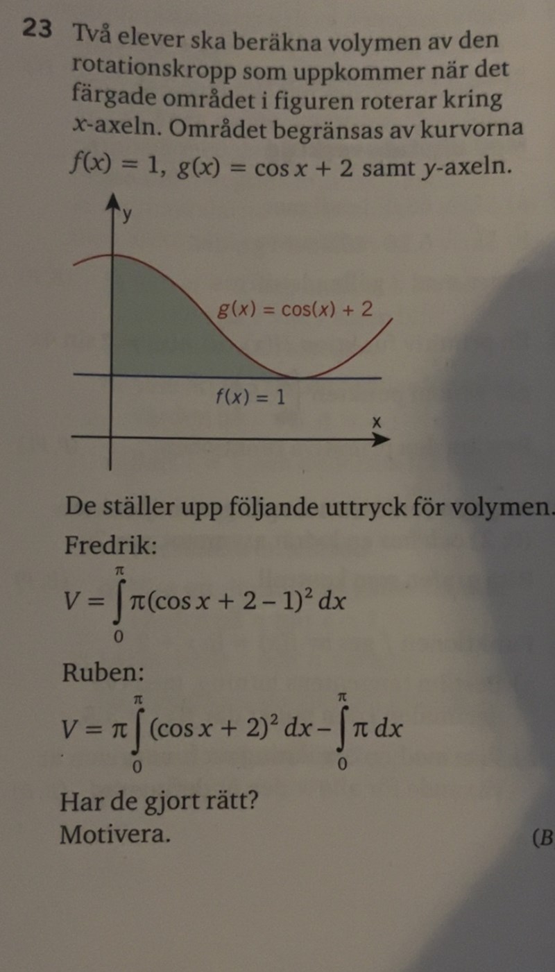 Om man gör som Fredeik gjorde så kommer den den inre radien att vara lika med 0, vilket ger en mycket mindre omkrets på rotationskroppen än vad den egentligen har. Detta leder till att den beräknade volymen blir mycket mindre än vad den egentligen är.