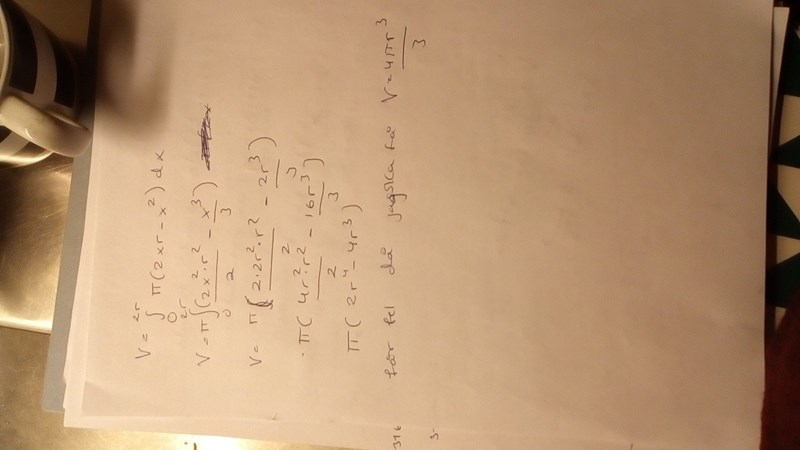 jag behöver hjälp med få uttrycket till volymen av en klot jag har försökt men ser ut som jag gör något fel med beräkningen!! Klotens volym uttryck är det vad jag vill få,dvs formel för uttrycket av volymen av en klot