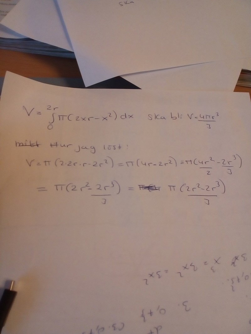 Min uppgift är att härleda en utryck för sedan kunna härleda utryck för klotets volym !!! Mitt mål är att få formeln  för klotets volym genom lösa integralen som jag fick ut