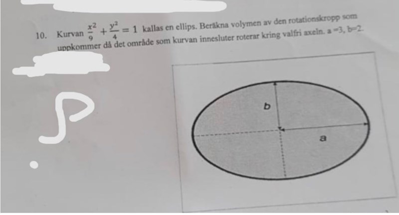 Katarina149 skrev:aha så de vill att man räknar ut ”volymen” av hela ellipsen.