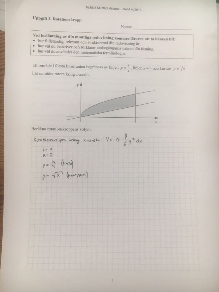 Rotationsvolym delprov A matematik 4 vt-13