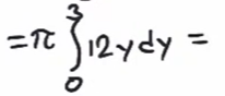 Nu byter vi x2 mot 12y. Cirkelskivan har volym pi 12y dy. Låter vi y gå från 0 till 3 har vi ett lager av skivor över varandra som är lika med dammens volym. Det ger integralen som fanns i bokens lösning.