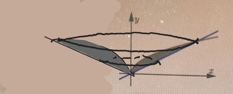 Alltså jag tänkte att när det roterar så är den ända ner till x axeln som volymen är.