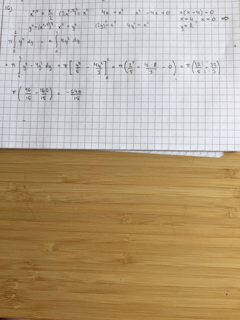 Jag gjorde så efter y=roten ur x får en större rotationsvolym om man kollar på figuren. Varför gjorde de tvärtom?