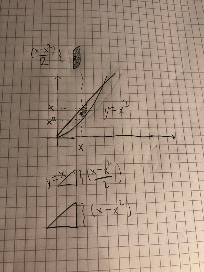 Det lodräta avståndet blir hypotenusan i en rätvinklig triangel med de övriga vinklarna 45 grader (eftersom linjen y=x lutar 45 grader). Det vinkelräta avståndet blir en av triangelns kateter, och är därmed gånger kortare än hypotenusan.