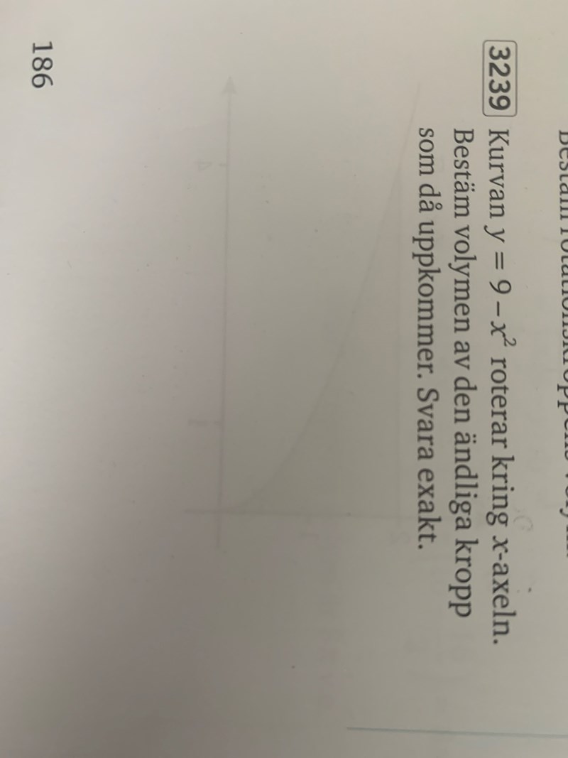 Hur löser man denna uppgift? Jag får fram svaret till 36pi men svaret är 1296pi/5