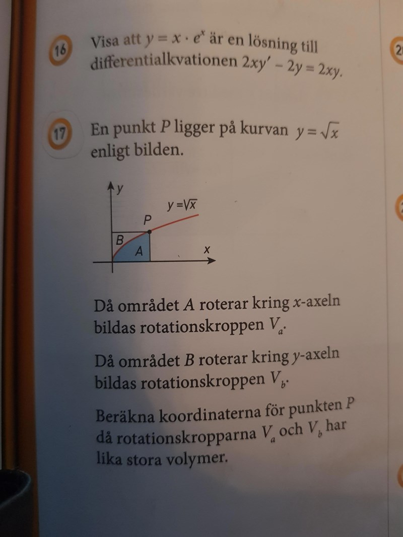 Om en rotation sker kring x-axeln så begränsas den ju av ett x-värde. Så facit borde ha blandat ihop dessa?