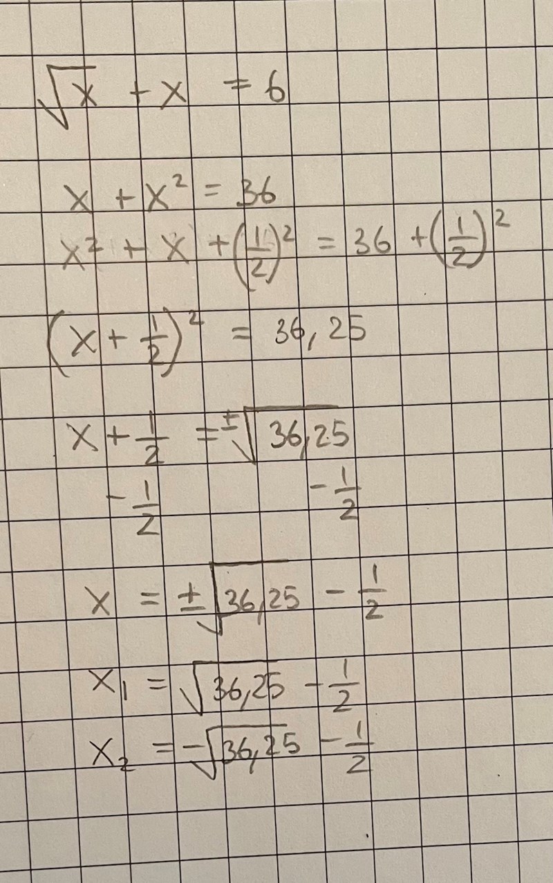 Det skrev jag i mitt första inlägg. Förutsatt att du menar "hur kvadrerar jag x+x\sqrt{x}+x" när du skriver "Om x+x\sqrt{x}+x inte blir x+x2x+x^2".