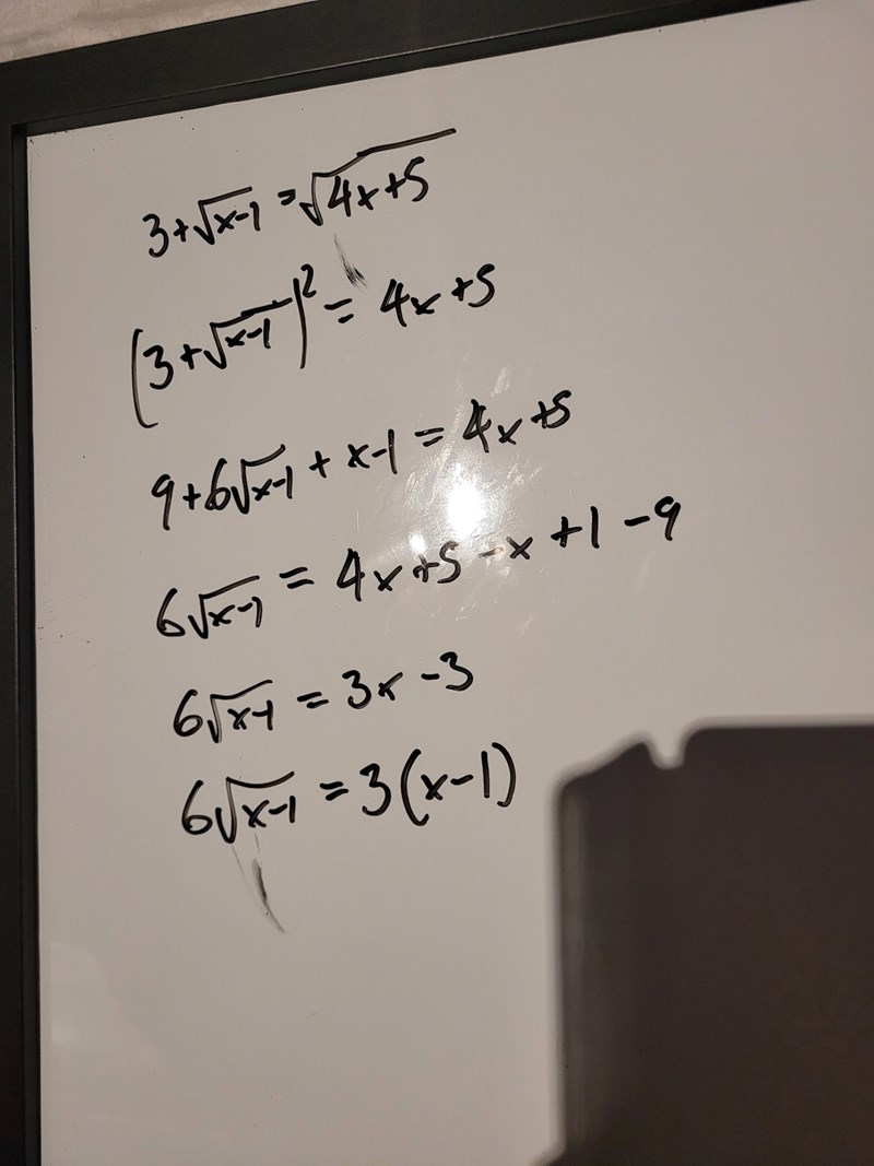 Kan inte se din bild men du kan börja med att kvadrera båda led och sedan isolera det nya rotuttryck som uppstår i vänsterledet och återigen kvadrera båda led.
