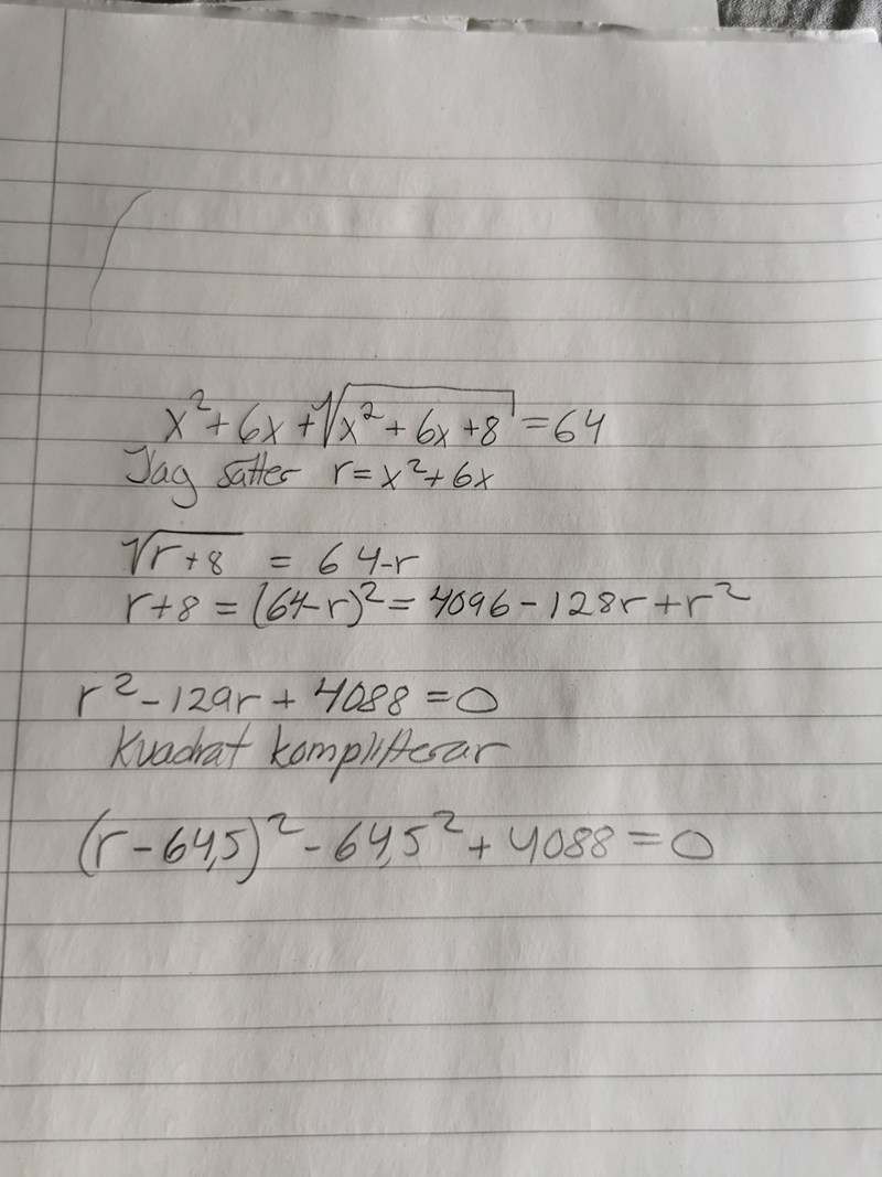 Jag bifogar en bild på hur jag försöker lösa denna ekvation.