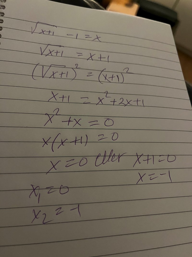 Så jag började med att flytta 1 till andra sidan. jag visar min lösning nedan. jag får svaret till att bli 0???